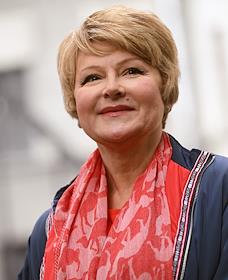 Церемония открытия памятника народным артистам СССР, актерам Государственного академического театра имени Евг. Вахтангова Василию Лановому, Владимиру Этушу и Юрию Яковлеву у Симоновской сцены Вахтанговского театра. Актриса Марина Есипенко на церемонии.