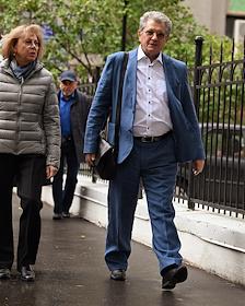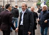 Церемония открытия памятника народным артистам СССР, актерам Государственного академического театра имени Евг. Вахтангова Василию Лановому, Владимиру Этушу и Юрию Яковлеву у Симоновской сцены Вахтанговского театра. Актер Эльдар Трамов на церемонии.