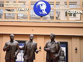 Церемония открытия памятника народным артистам СССР, актерам Государственного академического театра имени Евг. Вахтангова Василию Лановому, Владимиру Этушу и Юрию Яковлеву у Симоновской сцены Вахтанговского театра.