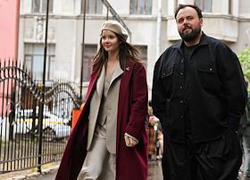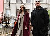 Церемония открытия памятника народным артистам СССР, актерам Государственного академического театра имени Евгения Вахтангова Василию Лановому, Владимиру Этушу и Юрию Яковлеву у Симоновской сцены Вахтанговского театра. Актриса Марина Есипенко на церемонии.