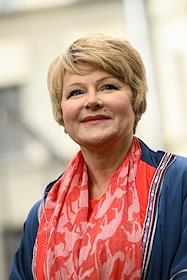 Церемония открытия памятника народным артистам СССР, актерам Государственного академического театра имени Евг. Вахтангова Василию Лановому, Владимиру Этушу и Юрию Яковлеву у Симоновской сцены Вахтанговского театра. Актриса Алёна Яковлева на церемонии.