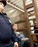 Рассмотрение апелляционной жалобы защиты на законность ареста журналистки Александры Баязитовой по делу о вымогательстве у "Промсвязьбанка" в Московском городском суде. Журналистка Александра Баязитова (в центре) во время заседания суда.