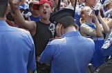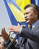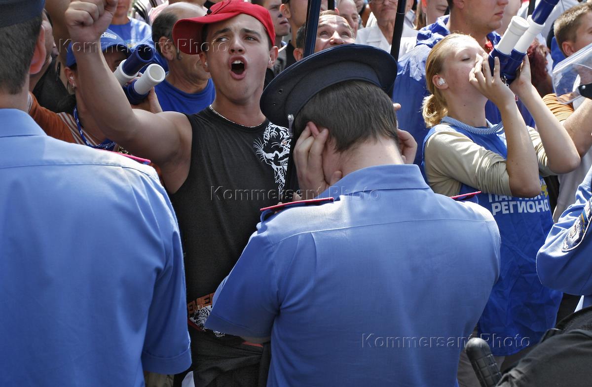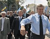 Народный депутат Украины, лидер Партии регионов Украины (ПР), возможный кандидат на пост премьер-министра Украины Виктор Янукович (справа) после выступления перед участниками бессрочного митинга в поддержку Антикризисной коалиции. Митинг прошел у здания Верховной Рады Украины.