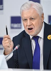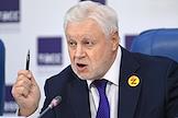 Пресс-конференция партии "Справедливая Россия - За правду", посвященная избирательной кампании 2022 года в информационном агентстве ТАСС. Председатель партии "Справедливая Россия – За Правду", руководитель фракции "Справедливая Россия" в Государственной думе России Сергей Миронов во время пресс-конференции.