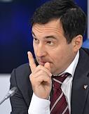 Пресс-конференция партии "Справедливая Россия - За правду", посвященная избирательной кампании 2022 года в информационном агентстве ТАСС. Первый заместитель руководителя фракции "Справедливая Россия - За правду" в Государственной думе (ГД) России Дмитрий Гусев во время пресс-конференции.