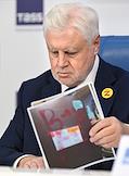 Пресс-конференция партии "Справедливая Россия - За правду", посвященная избирательной кампании 2022 года в информационном агентстве ТАСС. Председатель партии "Справедливая Россия – За Правду", руководитель фракции "Справедливая Россия" в Государственной думе России Сергей Миронов во время пресс-конференции.