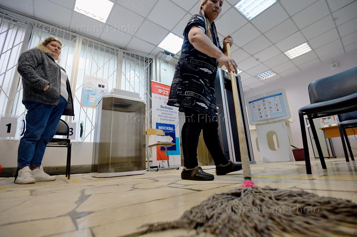 Single voting day. The work of the precinct election commission (PEC) No. 2245, located in the state budgetary institution of culture of Moscow on Ostrovityanova Street, 19/22, on the first day of voting. Genre photography.