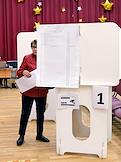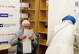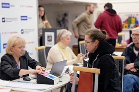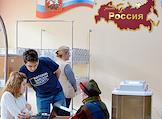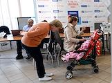 Single voting day. The work of the precinct election commission (PEC) No. 2227, located on the territory of the Khrustalny ice rink on Profsoyuznaya Street, 97, bldg. 1, on the first day of voting. Genre photography. Voters at the polling station.
