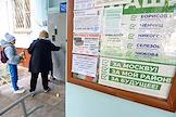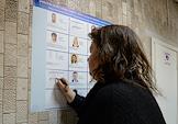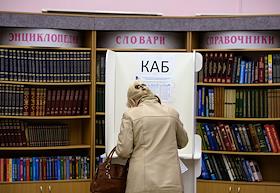 Single voting day. Genre photography. Information board at the entrance to the polling station.