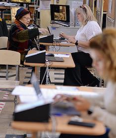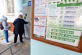 Single voting day. The work of the precinct election commission (PEC) No. 2245, located in the state budgetary institution of culture of Moscow on Ostrovityanova Street, 19/22, on the first day of voting. Genre photography. Voters at the polling station.