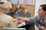 Single voting day. The work of the precinct election commission (PEC) No. 2227, located on the territory of the Khrustalny ice rink on Profsoyuznaya Street, 97, bldg. 1, on the first day of voting. Genre photography. PEC members and voters at the polling station.