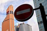 Виды Москвы. Жанровая фотография. Московский международный деловой центр "Москва-Сити". Дорожный знак "Движение запрещено".