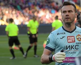 Russian Premier League (RPL). MIR - Russian Football Championship 2022/2023. Round 9 Match between the teams of CSKA (Moscow) - "Krasnodar" (Krasnodar) at the stadium "VEB Arena". CSKA goalkeeper Igor Akinfeev during the match.