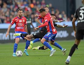 Russian Premier League (RPL). MIR - Russian Football Championship 2022/2023. Round 9 Match between the teams of CSKA (Moscow) - "Krasnodar" (Krasnodar) at the stadium "VEB Arena". Krasnodar team player Christian Ramirez (left) during a match.