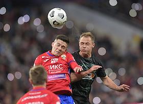 Russian Premier League (RPL). MIR - Russian Football Championship 2022/2023. Round 9 Match between the teams of CSKA (Moscow) - "Krasnodar" (Krasnodar) at the stadium "VEB Arena". CSKA team player Fyodor Chalov (left) during the match.
