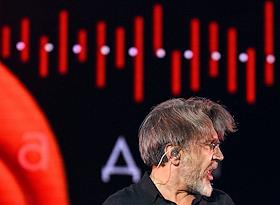 Концерт группы "Ленинград" на стадионе "Лужники". Лидер группы "Ленинград" Сергей Шнуров во время концерта "Ленинград. Классика".