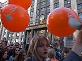 День города в Москве. Праздничные мероприятия, посвященные 875-й годовщине основания города Москвы. Горожане во время празднования на улице Охотный ряд.