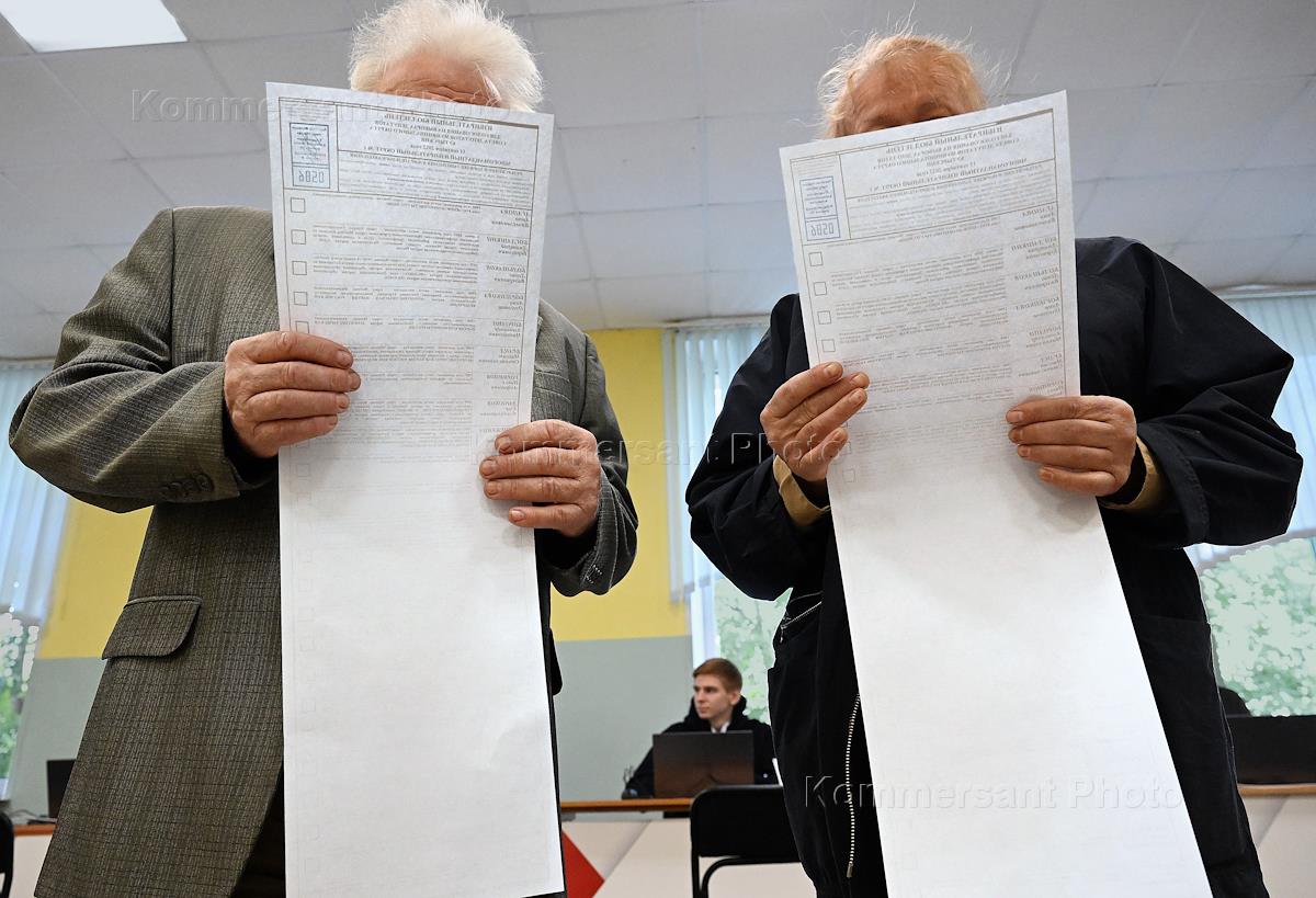 Единый день голосования. Голосование на муниципальных выборах в Москве на избирательном участке в школе № 1236. Избиратели во время голосования.