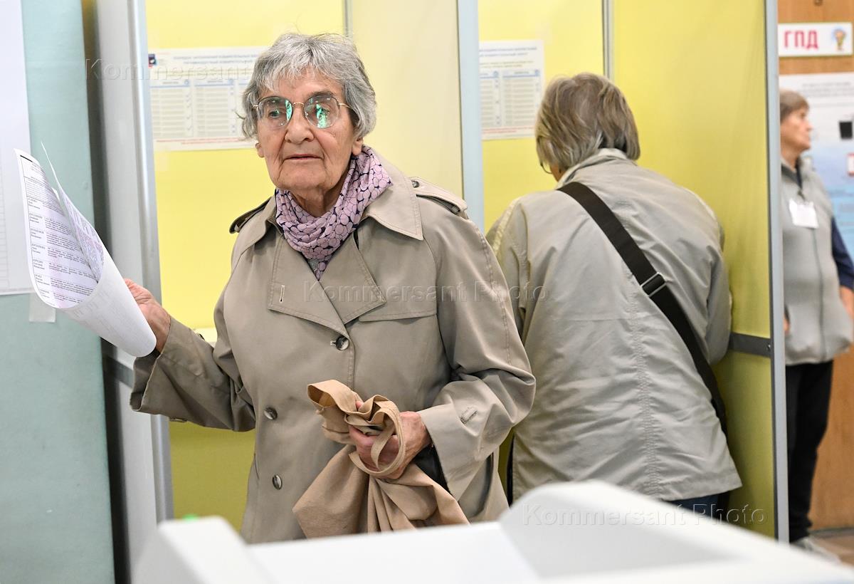 Единый день голосования. Голосование на муниципальных выборах в Москве на избирательном участке в школе № 1236. Избиратели во время голосования.