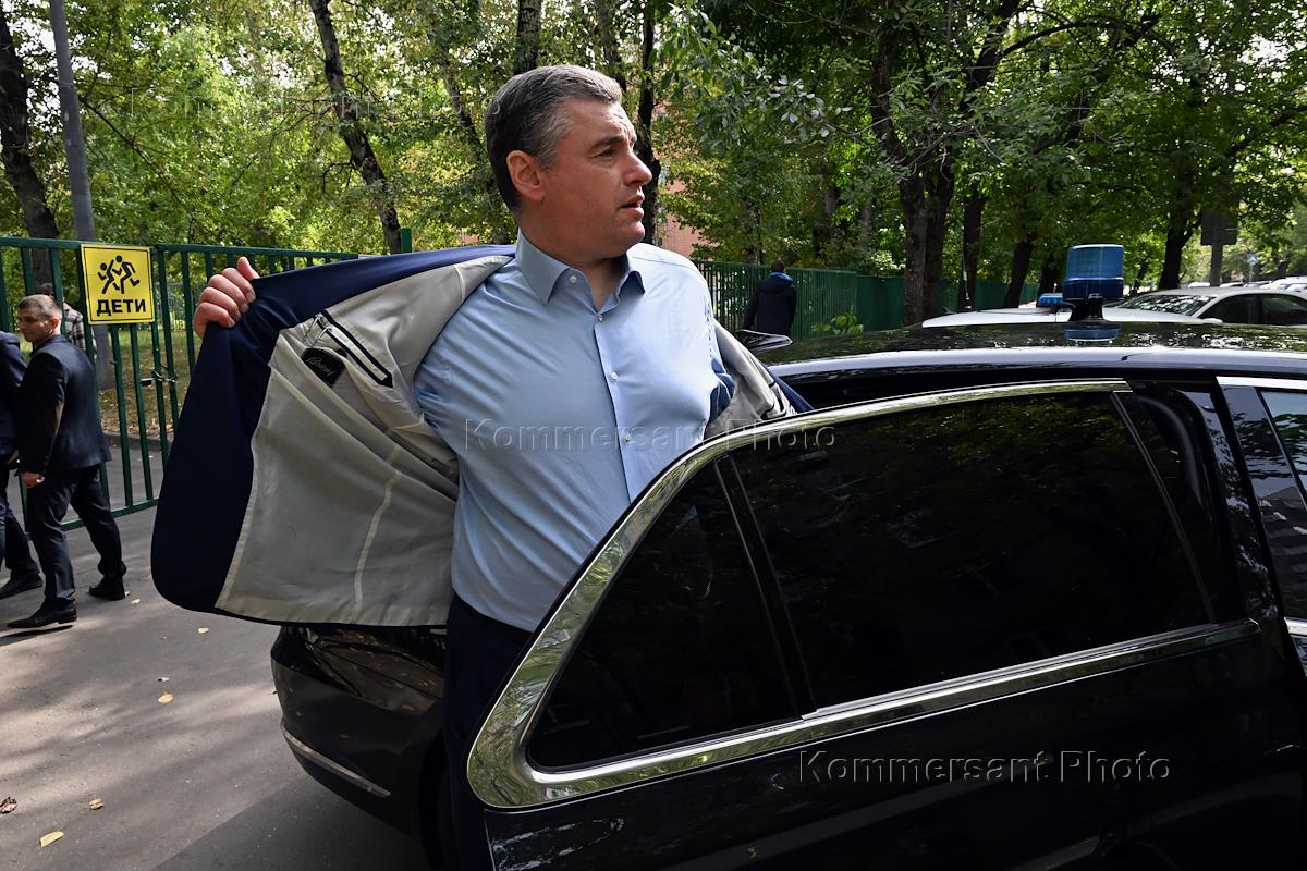 Единый день голосования. Председатель ЛДПР Леонид Слуцкий перед голосованием на муниципальных выборах в Москве на избирательном участке в школе № 1236.