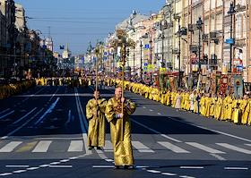 Крестный ход по Невскому проспекту от Казанского кафедрального собора к Александро-Невской лавре, приуроченного ко дню перенесения мощей святого князя Александра Невского в Санкт-Петербург. Служба в Казанском кафедральном соборе.