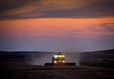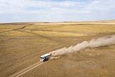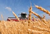 Сбор урожая пшеницы в Оренбургской области. Работа комбайнов на полях.