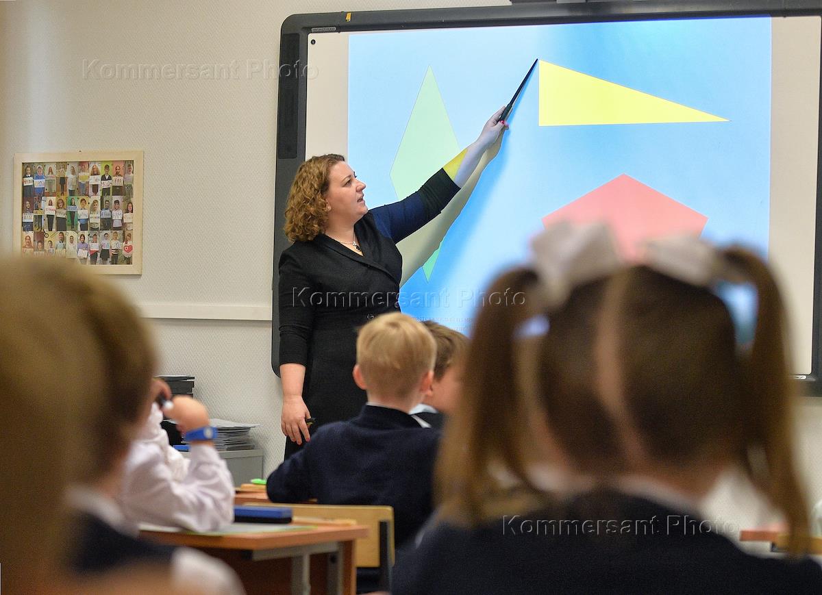Школа № 1466 имени Надежды Рушевой на улице Ереванской. Жанровая фотография. Учитель у доски во время урока.