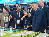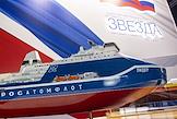 XI Петербургский международный газовый форум (ПМГФ–2022) в конгрессно-выставочном центре "Экспофорум". Жанровая фотография. Макет корабля "Лидер" Росатомфлота на стенде судостроительного комплекса "Звезда".