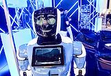 XI Петербургский международный газовый форум (ПМГФ–2022) в конгрессно-выставочном центре "Экспофорум". Жанровая фотография. Робот на выставочном стенде.
