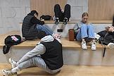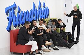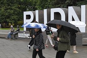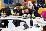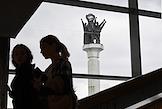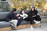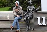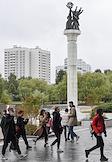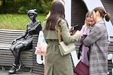 Российский университет дружбы народов (РУДН). Жанровая фотография. Студенты на территории университета. Скульптура "Дружба народов".