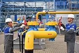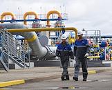 Пресс-тур на компрессорную станцию КС "Волоколамская" ПАО "Газпром". Жанровая фотография. Сотрудники ООО "Газпром трансгаз Москва" во время работы на территории станции.