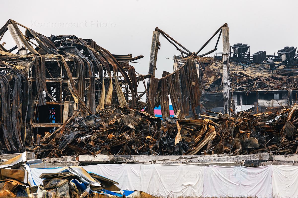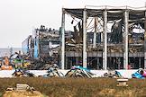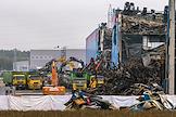 Последствия пожара на складе компании Ozon 3 августа 2022 в cеле Петровское Истринского района. Разбор сгоревших конструкций склада.