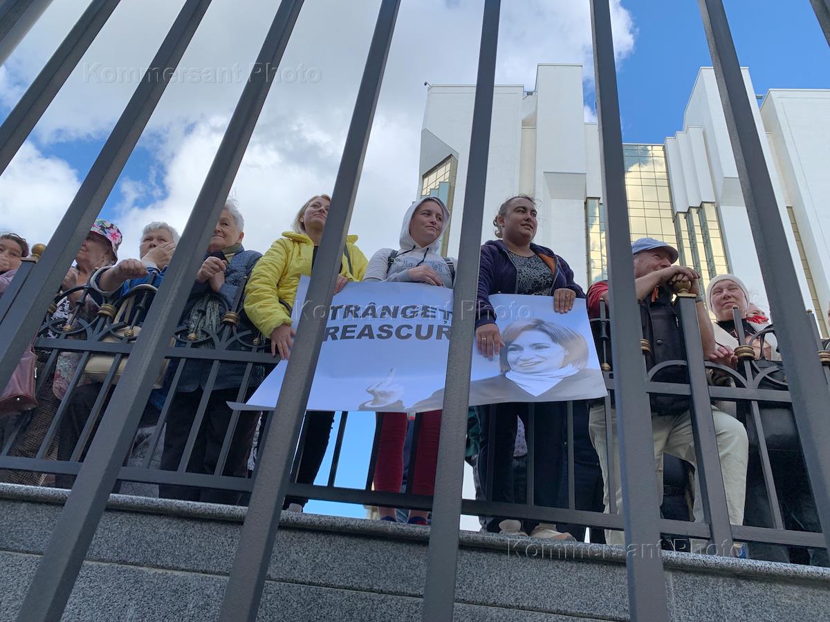 Антиправительственный митинг перед зданием администрации президента Молдавии. Участники во время митинга.