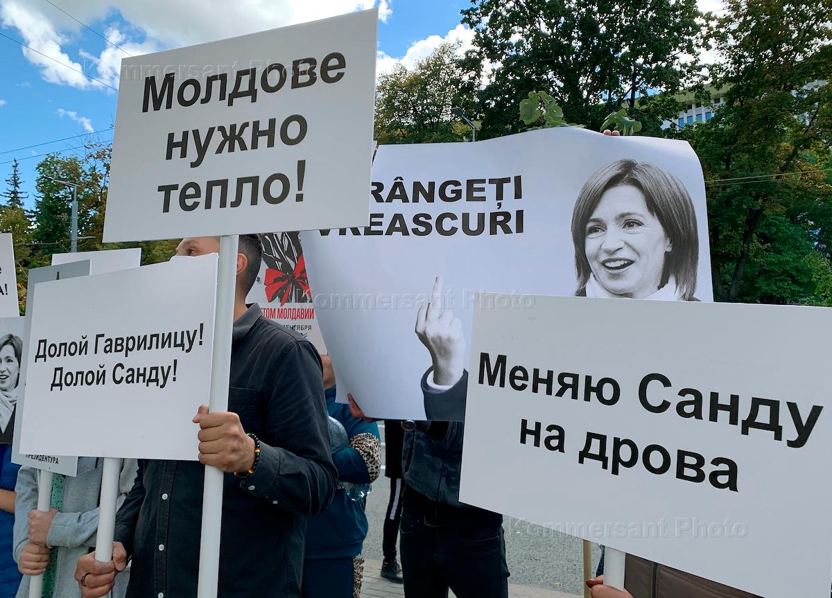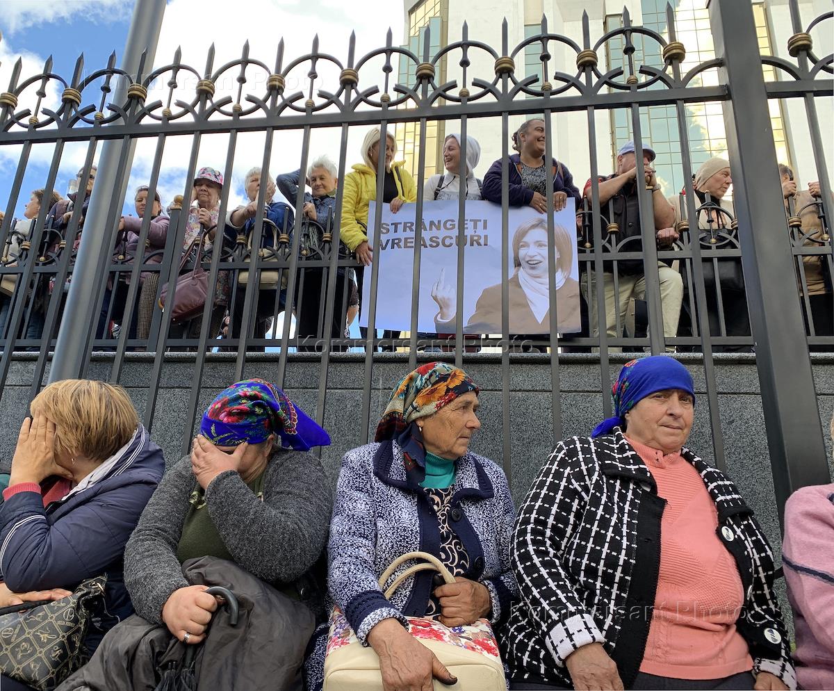Антиправительственный митинг перед зданием администрации президента Молдавии. Участники во время митинга.