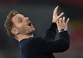 Российская Премьер-Лига (РПЛ). МИР - Чемпионат России по футболу 2022/2023. 10 тур. Матч между командами "Спартак" (Москва) - "Локомотив" (Москва) на стадионе "Открытие Арена". Главный тренер команды "Локомотив" Йозеф Циннбауэр (справа) во время матча.