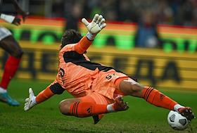 Российская Премьер-Лига (РПЛ). МИР - Чемпионат России по футболу 2022/2023. 10 тур. Матч между командами "Спартак" (Москва) - "Локомотив" (Москва) на стадионе "Открытие Арена". Вратарь команды "Спартак" Александр Селихов (в центре) во время матча.