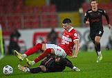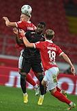Российская Премьер-Лига (РПЛ). МИР - Чемпионат России по футболу 2022/2023. 10 тур. Матч между командами "Спартак" (Москва) - "Локомотив" (Москва) на стадионе "Открытие Арена". Игрок команды "Спартак" Алесандр Соболев (в центре) и игрок команды "Локомотив" Марк Мампасси (справа) во время матча.