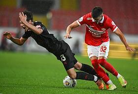 Российская Премьер-Лига (РПЛ). МИР - Чемпионат России по футболу 2022/2023. 10 тур. Матч между командами "Спартак" (Москва) - "Локомотив" (Москва) на стадионе "Открытие Арена". Игрок команды "Локомотив" Наир Тикнизян (слева) во время матча.