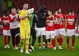 Российская Премьер-Лига (РПЛ). МИР - Чемпионат России по футболу 2022/2023. 10 тур. Матч между командами "Спартак" (Москва) - "Локомотив" (Москва) на стадионе "Открытие Арена". Вратарь команды "Локомотив" Даниил Худяков (справа) во время матча.