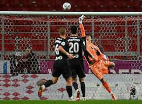 Российская Премьер-Лига (РПЛ). МИР - Чемпионат России по футболу 2022/2023. 10 тур. Матч между командами "Спартак" (Москва) - "Локомотив" (Москва) на стадионе "Открытие Арена". Вратарь команды "Локомотив" Даниил Худяков (справа) и игрок команды "Локомотив" Марк Мампасси (слева) во время матча.