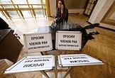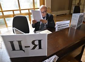 Общее собрание академиков Российской академии наук (РАН), посвященное выборам президента РАН, в Большом зале РАН. Академики РАН во время тайного голосования.