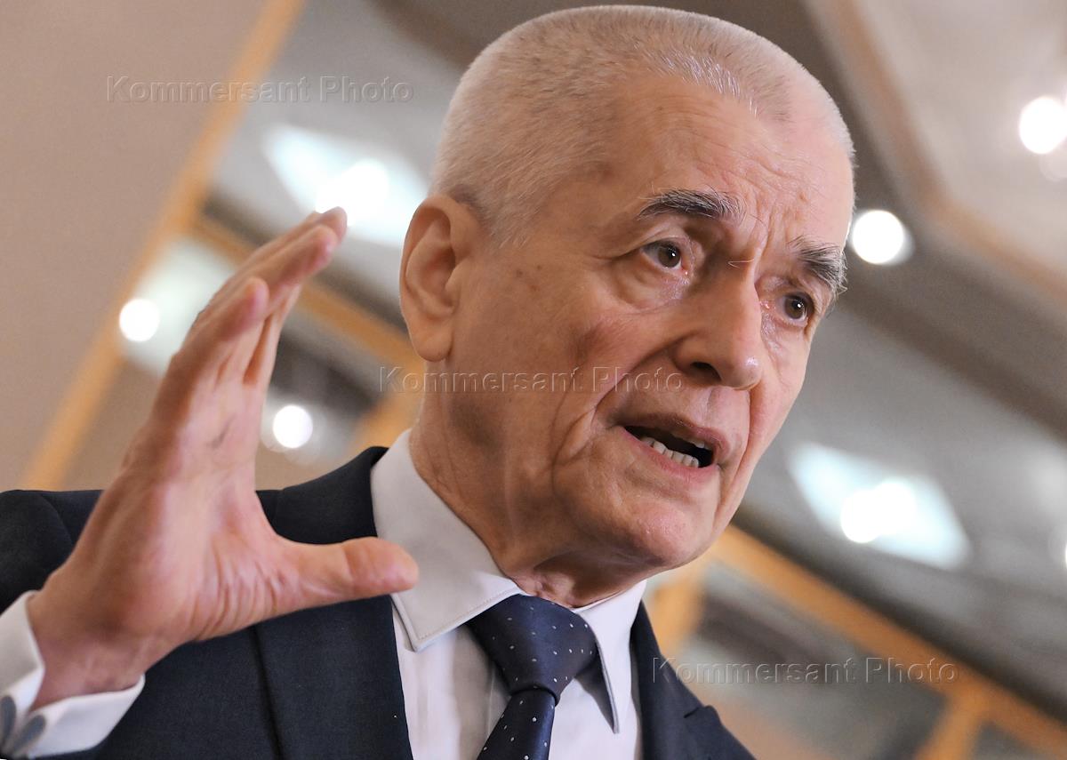 Общее собрание академиков Российской академии наук (РАН), посвященное выборам президента РАН, в Большом зале РАН. Академик РАН, заместитель президента Российской академии образования Геннадий Онищенко перед началом собрания.