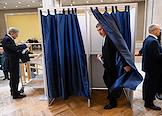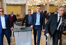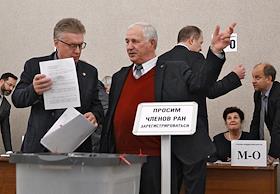Общее собрание академиков Российской академии наук (РАН), посвященное выборам президента РАН, в Большом зале РАН. Академики РАН во время тайного голосования.