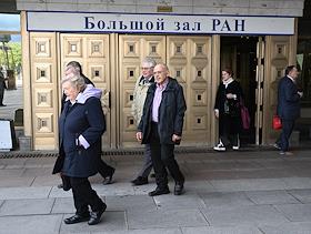 Общее собрание академиков Российской академии наук (РАН), посвященное выборам президента РАН, в Большом зале РАН. Академики РАН перед началом собрания.