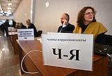 Общее собрание академиков Российской академии наук (РАН), посвященное выборам президента РАН, в Большом зале РАН. Жанровая фотография. Место регистрации членов РАН перед началом выборов.