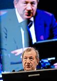 Общее собрание академиков Российской академии наук (РАН), посвященное выборам президента РАН, в Большом зале РАН. Избранный президент Российской академии наук, председатель правления АО "Научно-исследовательский институт молекулярной электроники" (НИИМЭ) Геннадий Красников во время собрания.