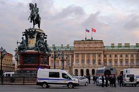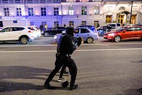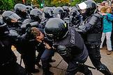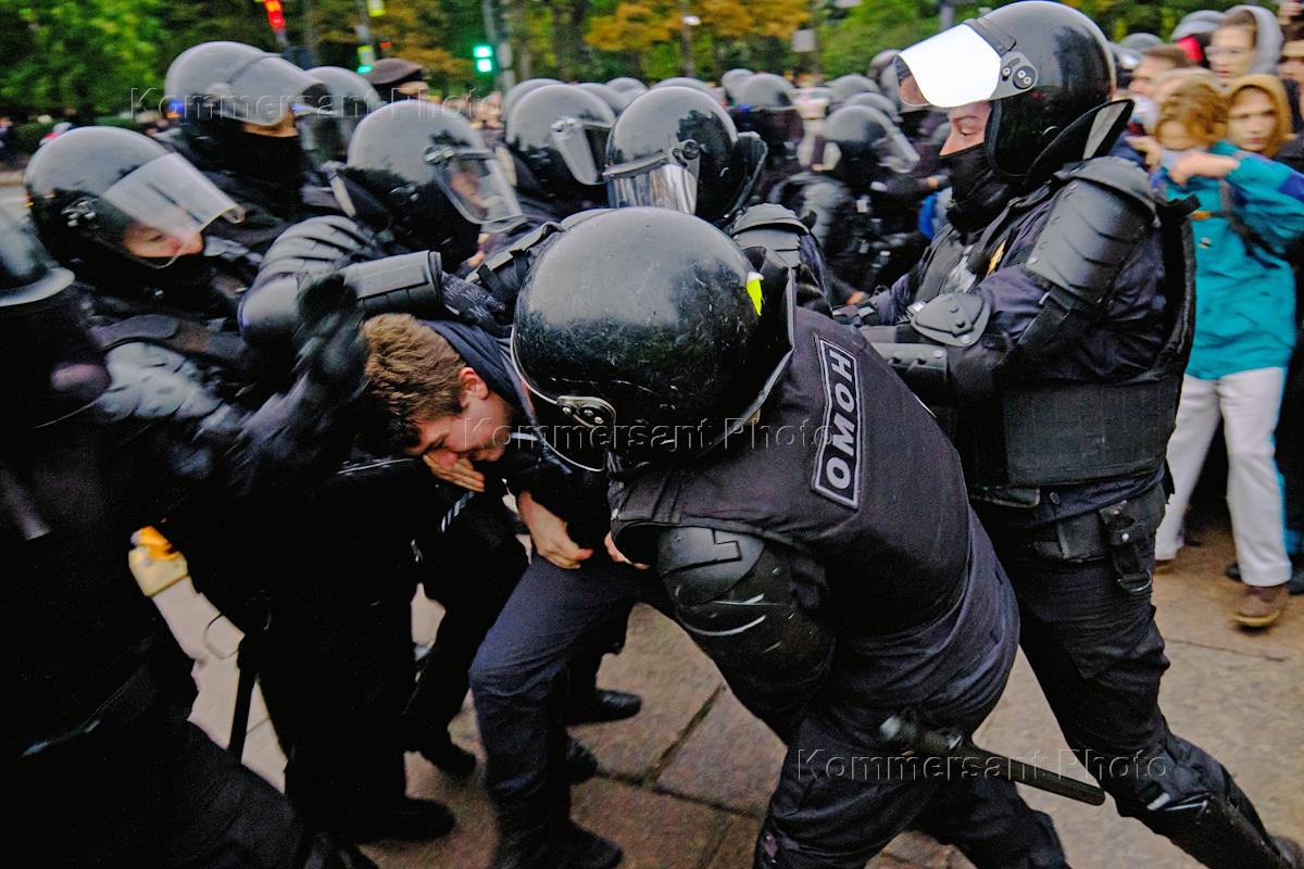 Несанкционированная акция протеста против частичной военной мобилизации, объявленной президентом России Владимиром Путиным 21 сентября 2022 года, в центре Санкт-Петербург. В ответ на обращение глав ДНР и ЛНР в феврале 2022 года Россия проводит специальную военную операцию на Украине. Сотрудники правоохранительных органов во время задержания участников акции.