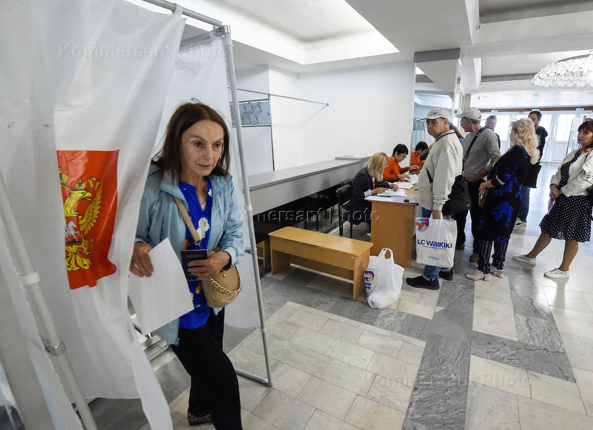 Проведение референдумов о вхождении в состав России Донецкой народной республики (ДНР), Луганской народной республики (ЛНР) и освобожденных территорий. Избиратели во время голосования на избирательном участке.