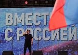 Митинг-концерт в поддержку референдумов о присоединении к России ДНР, ЛНР и частей Херсонской и Запорожской областей Украины прошел на площади перед Дворцом молодежи. Лидер и один из создателей музыкальной группы "Агата Кристи" Вадим Самойлов (в центре) во время выступления.