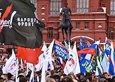 Акция "Своих не бросаем", организованная Общероссийским народным фронтом" (ОНФ), прошла на Манежной площади. Участники во время акции.